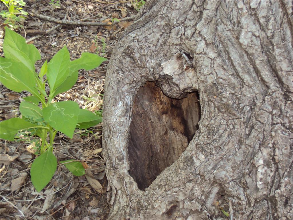 Tree growing around downed tree. |